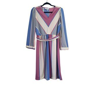 Vintage 70s Sallys Girl Striped Long Sleeve Dress Size 12 Retro Mod Boho Gla