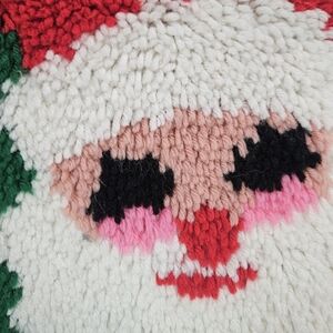 In excellent condition Vintage 70s Santa Claus Handmade Latch Hook Throw Pillow Accent Pillow 14x15