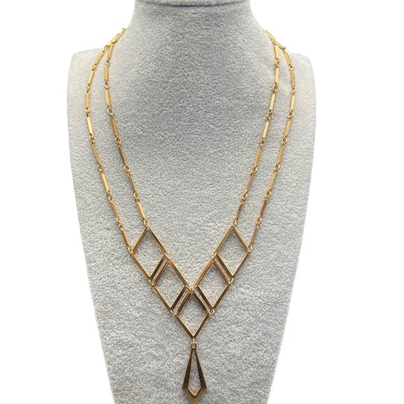 Vintage 70s Sara Coventry gold tone Goddess necklace geometric layer Y drop