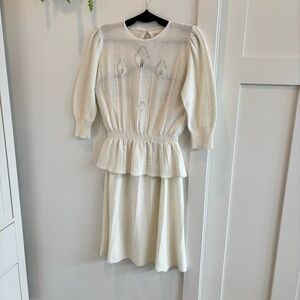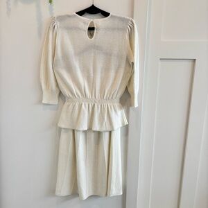 Vintage 70's Savion by Ignacy Feuer Cream Women's Knit Skirt Set Peplum Size 10