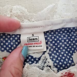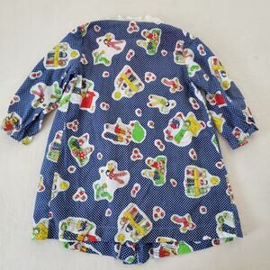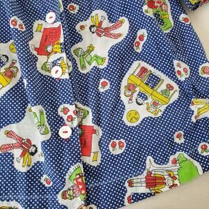Vintage Sears brand 70s era dotted long sleeve dress with kids playing at school pattern all over! Please see all photos for condition and measurements
