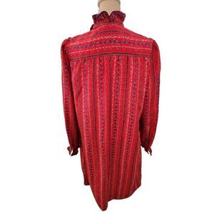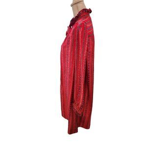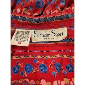 Vintage 60s 70s Schrader Sport Womens Red Blue Floral Long Sleeve Maxi Dress 18 XL Modest Prairie