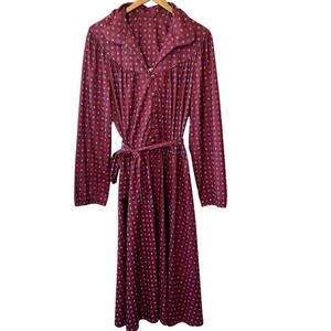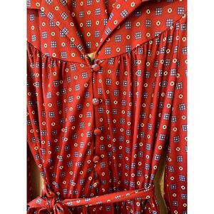 Vintage 70's Sears Collared Button Front Printed Peasant Retro Midi Dress Sz 16