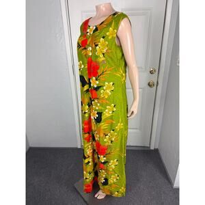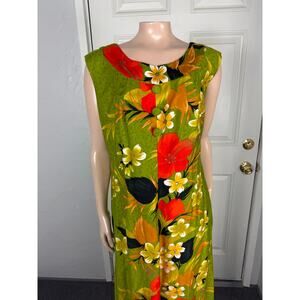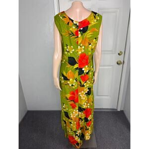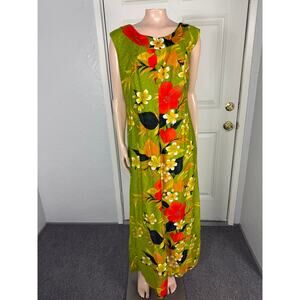 Vintage 70s Sears Fashion Women's Dress Floral Cotton Party Hawaiian Maxi Z6