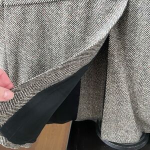 Vintage 70s Sears the men’s shop herringbone tweed sportcoat or blazer with some details that are distinctively Safari style, which was very popular during that era. These include things like the button flap pocket seams and the back shoulder pleats. Single vented back. I don’t see a fabric content tag, but I would bet that this is wool with an acetate lining. The union label inside places it in the 70s in addition to the style. The flap pocket buttons are decorative. Size 46 long. Laying flat measures 32 inches shoulder, 24 inches armpit to armpit. 26 inches shoulder seem to cough and 20 inches shoulder seam to shoulder seam