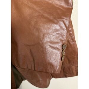 Vintage 70’s Sears Size 46 Tall Brown Orange Retro 2 Button Leather Jacket Coat
