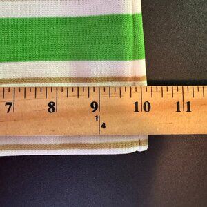 Vintage 70s Sears Women's White Polyester Bell Bottom Pants, Green Stripes