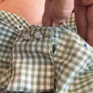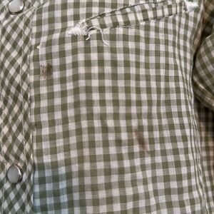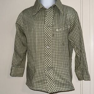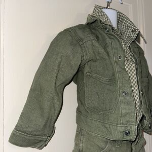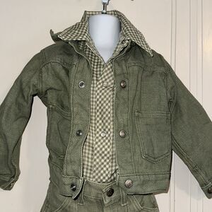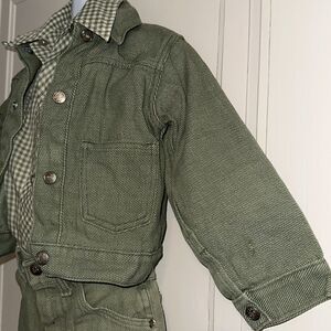 Vintage 70s Sears green denim jean jacket & pants with matching white & green checked western shirt