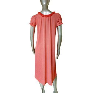Vintage 70s Semi Sheer Short Sleeves Nightgown-Lingerie Size Small Solid Pink