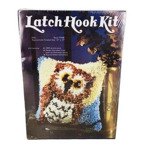 Vintage 70s Sew Simple Owl Pillow Latch Hook Kit Beginner Style #T508 Sealed NEW