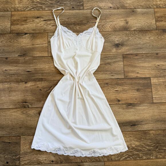 Vintage 70s Shadowline Cream Lace Lingerie Slip Dress