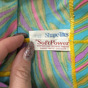 Vintage 70s Shape-Tites Teal Yellow Pink Swirl Footed Tights size S NEW Tags