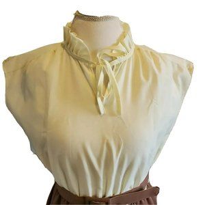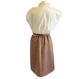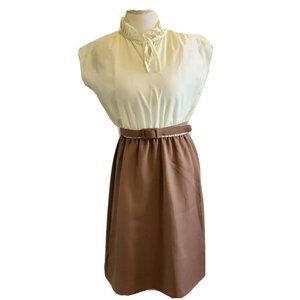 Vintage 70s Womens Size Medium Sheath Dress Belted Necktie Neutral