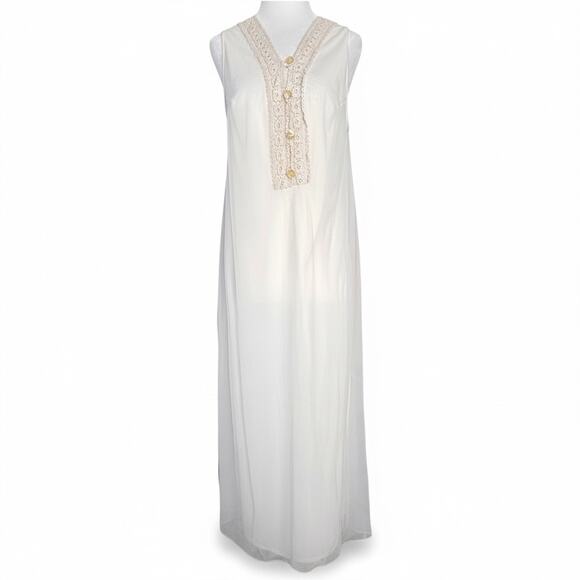 Vintage 70s Sheer White Lace Trim Maxi Nightgown Made In USA Eternal Romantic