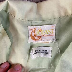 Vintage 70s Shirt Mens Medium M Green Hawaii Sharp Collar Disco Polyester Logo