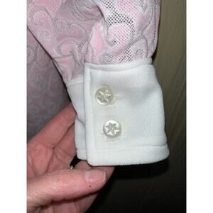 Vintage 70's Shirt Womens Small Pointed Disco Collar Burnout Polyester Button Up