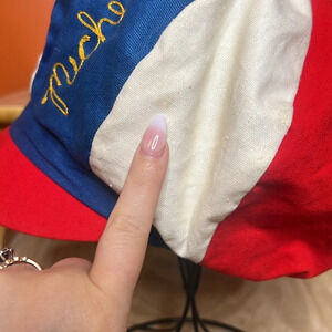 AS IS 🚨 True vintage 1970s Six Flags Great America engineer-style cap featuring patriotic red, white & blue color blocking and Uncle Sam Bugs Bunny graphic.