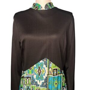 Vintage 70s Size Large Mod Maxi Dress Long Sleeve Evening Gown Modest Boho
