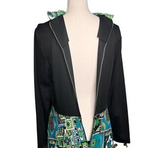 • Black Polyester Bodice with a Vivid Chinoiserie Pattern Skirt & Split Band Collar