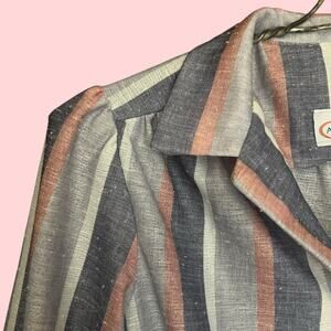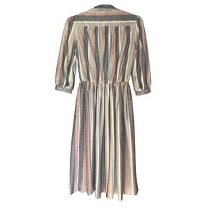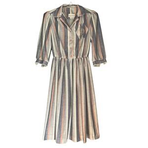 Vintage 70s Size Medium Pink Gray Stripe Retro Rockabilly Day Dress Fit & Flare