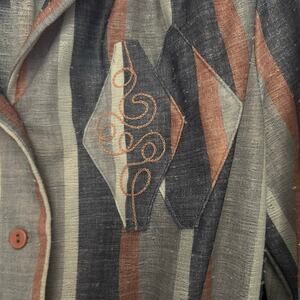 • Button front top with a lay-flat notch collar in a nubby textured fabric that feels like a polyester blend