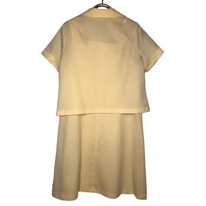 Vintage 70s Size XL Yellow Leisure Suit Dress Jacket Set Polyester Seersucker