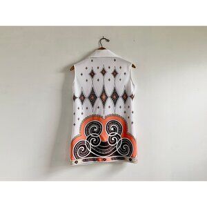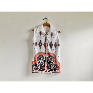 Vintage 70s Sleeveless Mod Top | Abstract Diamond Print | Size S