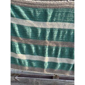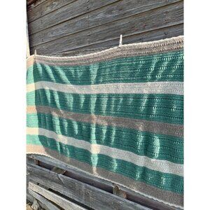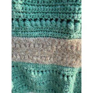Vintage 70's Small Afghan Wool/acrylic Green Beige Gray 61x46"