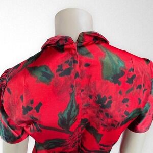 Vintage Hawaiian style floral maxi dress with a cute collar and short sleeves Side slits on both sides. Looks like it was homemade. Zip closure on back. Not lined. No stretch.