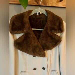 Vintage 70s Smug Tan w/ Brown Faux Fur Lined Trench coat Jacket Ranch boho Disco