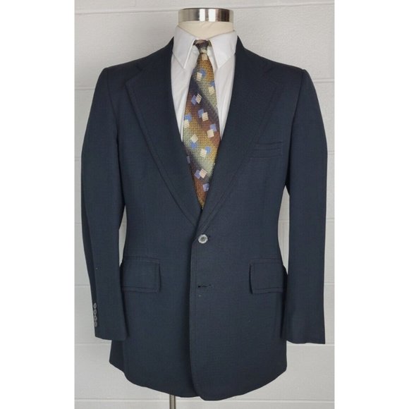Vintage 70s Society Brand Black Polyester Leisure Sport Coat sz 40?
