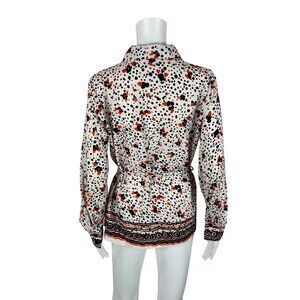 Vintage 70s Spotted Top Women's Medium Orange Brown Border Print Collared Shirt