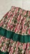 This has several tiers of ruffles and a Christmas print with holly and berries. Elastic waist (vintage 40+ years old so it's not as stretchy as elastic nowadays). Several tiers in a deep green, the colors are super bold.