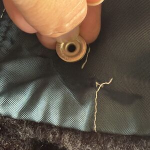 Left leg zipper missing a few teeth, still zips carefully and holds closed