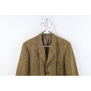 Vintage 70s Streetwear Mens 42L Wool Tweed Suit Coat Blazer Jacket Beige Plaid