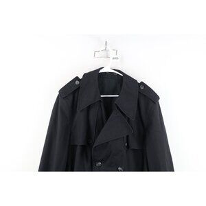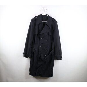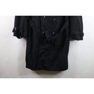 Vintage 70s Streetwear Mens 44R Distressed Belted Trench Coat Jacket Black