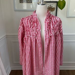 Vintage 70s Styled by Saybury Red Gingham House Coat Nightgown S M