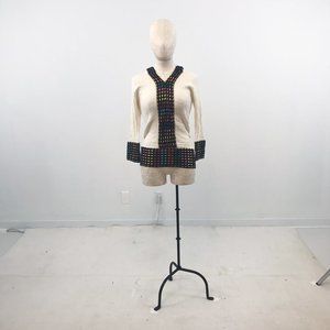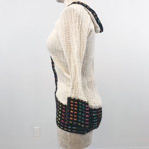 Vintage 70s Surfer Rainbow Stripe Baja Hoodie Cream