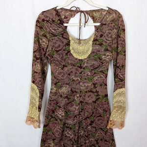 Vintage 70’s Susie Craig for Bill Berman M Floral Lace Prairie Boho Maxi Dress