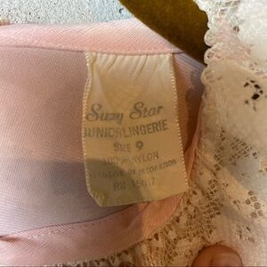 Vintage 70s Suzy star pale pink Victorian cream lace long night gown