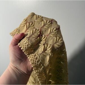 Vintage 70s Tan Crochet Open Knit Button Up Cardigan Size Medium