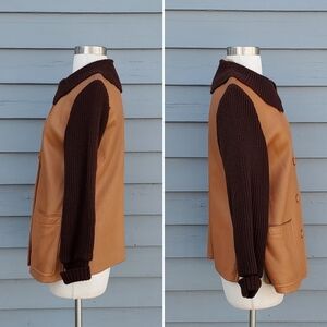 Vintage 70s Tan Deerskin Buckskin Leather Brown Knit Boho Western Jacket Md