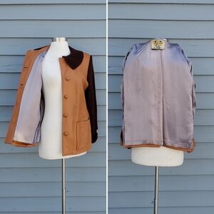 Vintage 70s Tan Deerskin Buckskin Leather Brown Knit Boho Western Jacket