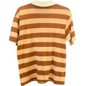Vintage 70s Tan and Brown Striped Custom Casual Single Stitch Polo Shirt Medium