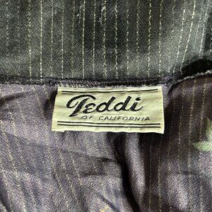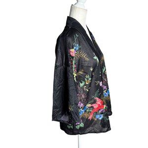 Vintage 70s Teddi Of California Kimono Style Top Size Small Black Floral Bird