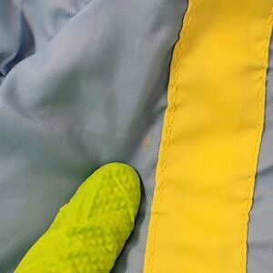 TELECOM HISTORY APPAREL, BLUE YELLOW STRIPES, RETRO WORK UNIFORM, USA HERITAGE ZIPPER, GREAT LAKES BRAND, PATCHED FRONT JACKET, XL VINTAGE FIT