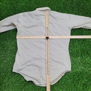 Vintage 70s Textured Hippie Button Shirt Medium 19x26 White Polyester Polka-Dot Western