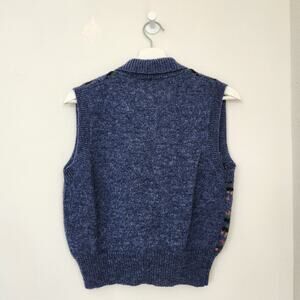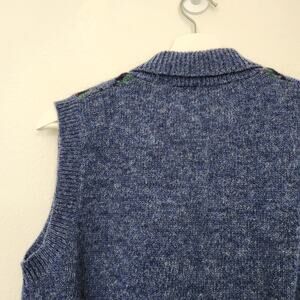 Vintage 70s The Villager Blue Fair Isle Knit Wool Sweater Vest Collared 80s S