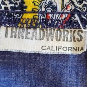Vintage 70s Threadworks Blue Chambray Paisley Floral Paneled Wrap Skirt