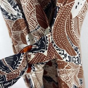 Vintage 70s Toni Todd Brown Black Floral Safari Faux Wrap Knee Dress Women's 10